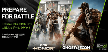 GTX 1080/1070搭載ビデオカード購入で「フォーオナー」や「ゴーストリコン」がもらえる