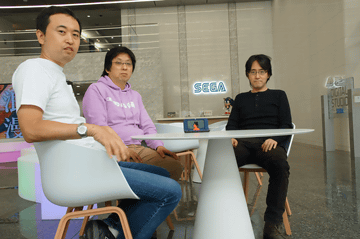 インタビューにご参加頂いたのはセガゲームスより、リードプロデューサー及びディレクターの小玉理恵子氏、スーパーバイザーの奥成洋輔氏。開発を手がけるエムツーより堀井直樹氏の3人。なお、今回はシニアプロデューサーの下村一誠氏はお休みとなった。