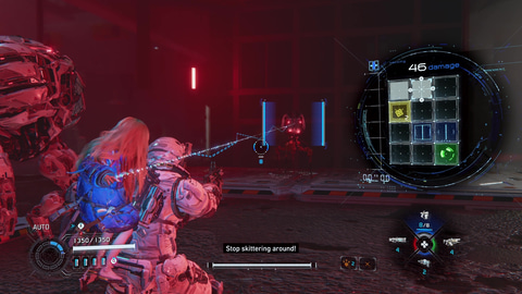趙氏:“シューティングとパズルの2つが1つのゲーム性”にならないといけなくて、1つの戦闘の中でシューティングだけをさせちゃうとか、ハッキングだけさせちゃうとかってなると目指しているところが崩れてしまうので、どうしてもシューティングをしながらハッキングもするみたいな形で遊びを最初作ったんです。