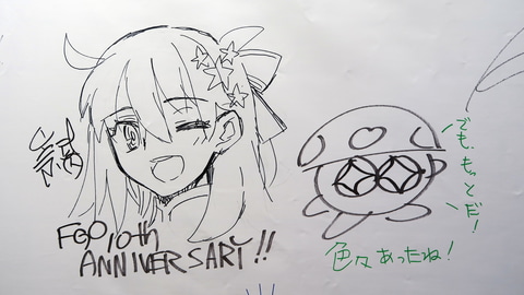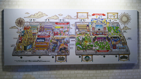 ウェルカム・ガーデンとメインステージの間には、毎年恒例となっている「メッセージフラッグ」が設置されており、イラストレーターや関係者、そして当日来場者による熱いメッセージがずらりと並んでいる。