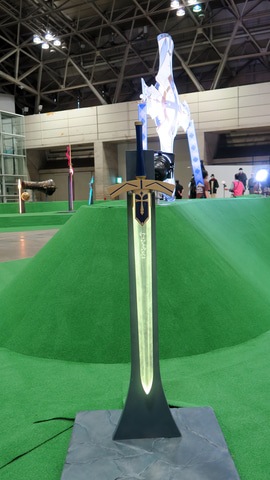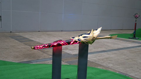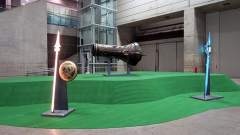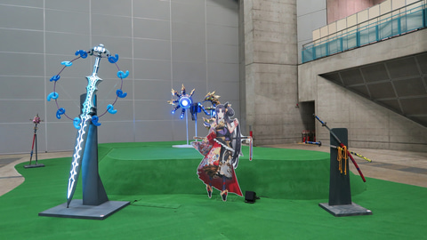 宝具展示エリアでは、これまでに制作されたた実寸大宝具が一挙に集結し、サーヴァントたちのスタンディと共に展示されていた。ラインナップの中でも特に注目されていたのが今回初効果いとなったマシュパラディーンの宝具「希望築く人理の盾(ロード・カルデアス)」。
