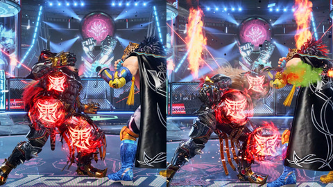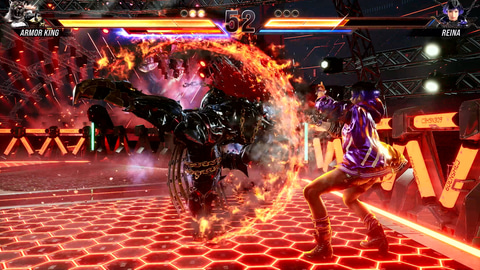 ヒート発動時については打撃力が強化されるほか、アーマーキング固有の効果として、火炎攻撃が使えるようになり、炎を纏った打撃技が使用可能に。また、特定の投げ技がホーミングアタック化されたり、ヒート状態の残り時間が回復できる「ストームメイカー」などの特殊な投げ技が使えたりするようになる。