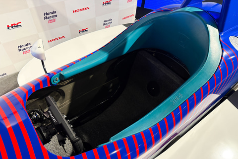 イベント出展時などで大人だけではなく子供でも体験できるように、ユーザビリティにも配慮された作りになっている。たとえば、本物のF1などではサイドポンツーンの上に乗ることはできないが、こちらの「Honda eMS SIM-01」では安全と安心を確保するために、あえて乗れるように設計されている。