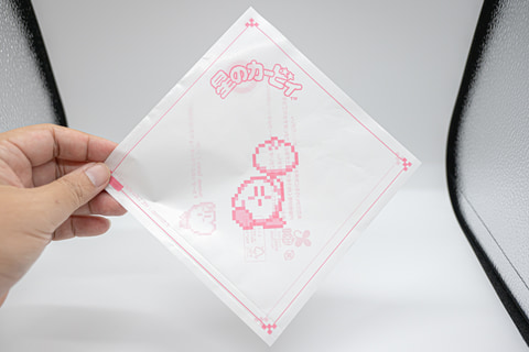 こちらもファミチキ袋と同じドット絵デザインで、カービィのイメージカラーであるピンク色で印刷されている。