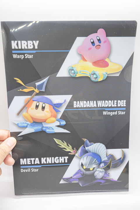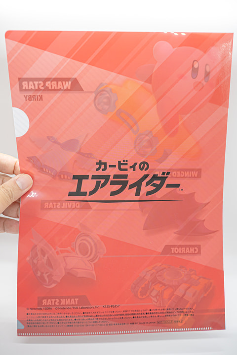 クリアファイルは全4種が展開。それぞれ「カービィのエアライダー」をデザインしたものとなっており、なかにはデデデ大王をはじめメタナイト、バンダナワドルディ、コックカワサキ、スターマンといったキャラクターたちや、「エアライダー」作中に登場するエアライドマシンなどもフィーチャーされたデザインが用意されている。