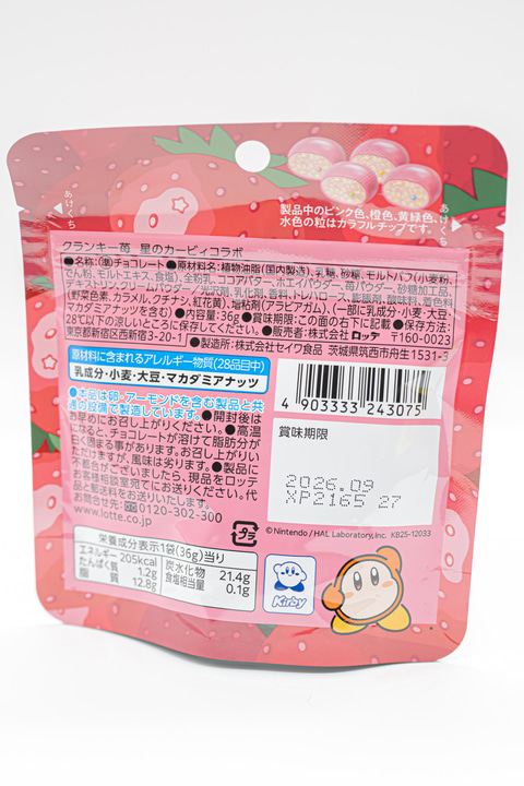 「クランキー苺」も、カービィを前面に押し出したオリジナルデザインのパッケージで登場。こちらを遠くから覗くようなカービィの姿が描かれており、店頭で目が合ったら思わず手にとってしまいそうな愛らしさだ。