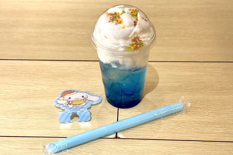 さらに、今回のコラボではシナモロールをイメージしたオリジナルメニューも登場。コラボキャンペーン開始に先駆けてメニューやグッズを撮影できる機会を得たので、本稿では撮り下ろしで紹介していく。