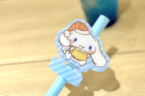 うどんは今回のコラボのために描き下ろされたビジュアルを使用した蓋が付属した状態で提供される。また、りんごソーダにはシナモロールのストローチャームが付いており、シナモロールファンはもちろん、小さな子どもにも喜ばれそうなものとなっている。ぜひ写真撮ったりして楽しんでいただきたい。