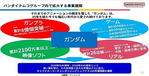 特に実物大ガンダム立像は、「アニメ会社だけでは絶対にできない」バンダイナムコグループの力の象徴だとし、今後も新たな展開が計画されているという。