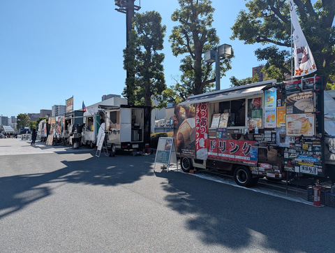 今回は多くのキッチンカーが軒を連ねており、ハンバーガーからカレーライス、ベビーカステラなどキッチンカーの定番メニューから、炊き立ての海苔弁当など、豊富なメニューが選択できるようになっており、混雑は予想されるものの、食事のメニュー選びで困ることはなさそうだ。