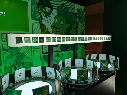 また、QRコードによる決済専用のガチャコーナーも用意。これまで発売してきた「ラバーフィギュアマスコット VoL.1~VoL.3」と「ブランカちゃん ラバーマスコットキーホルダー」に加えて、最新の「ラバーフィギュアマスコット VoL.4」が先行発売となっており、新たに追加となった豪鬼やJP、キャミィ、ダルシム、リリー、ザンギエフのデフォルメキャラクターのラバーフィギュアが購入できる。ガチャは1回500円で利用可能だ。