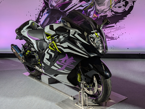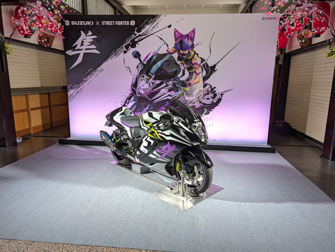 スズキブースには「スト6」コラボバイク第2弾「隼」のジュリコラボモデルが展示!