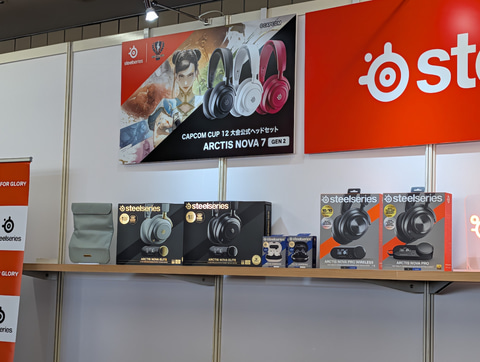 ほかにも、協賛メーカーとしては、Steelseriesもブースを出展。同社のゲーミングヘッドセット「ARCTIS NOVA 7 GEN 2」が、「CAPCOM CUP 12」大会公式ヘッドセットとなっている点をアピール。同社の各種ヘッドセットなどの製品について、試遊できるスペースが設けられている。