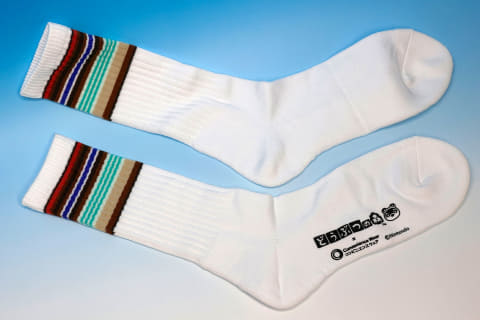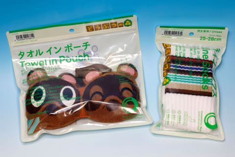 さらに、コンビニエンスウェアも今回のコラボレーションキャンペーンに含まれている。こちらは、「タオルインポーチ」と「ラインソックス」という2種類のアイテムだ。どちらも見た目のインパクトがなかなか強く、「どうぶつの森」カラーが見事に出ているアイテムとなっている。