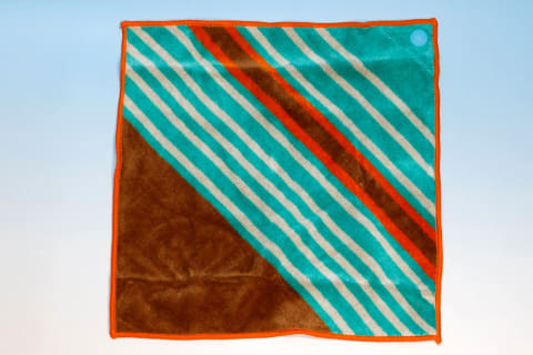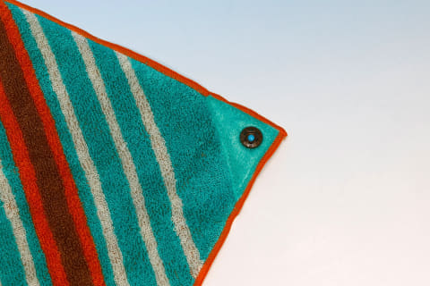 このタオル自体は、比較的シンプルなデザインになっており使い勝手も良さそうである。こちらもユニークな仕掛けが施されており、1カ所だけ角にボタンが付けられている。こちらをポーチ側に取り付けられるようになっているので、ケースだけ無くしてしまうということも防げそうだ。