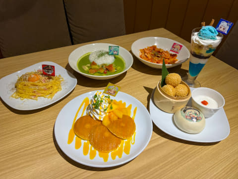 コラボメニューは全部でフード系が6種、ドリンク系が8種とかなり豊富。コラボ商品にはそれぞれ、キャラクターが印刷された旗などもついてくるため、推しがいるならそのキャラクターをテーマにしたものを頼むといいだろう。