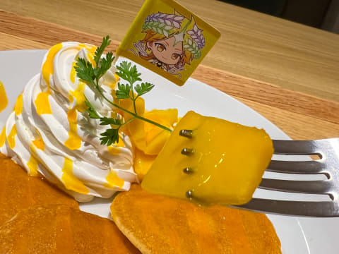 パンケーキはしっとりとしていて、それ自体は甘みが抑えられている。だから、付け合わせのマンゴーやマンゴーソースだけでなく、ホイップクリームを山のように載せて食べても、口の中が甘さで気持ち悪くなることはない。