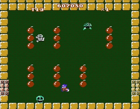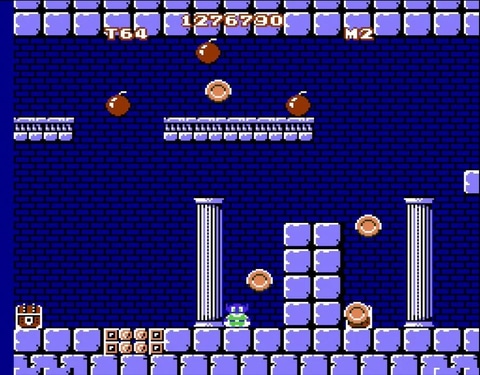 一定数の爆弾を取ると出現するパワーボールを取ると、画面内の敵が金貨に変わるルールも、固定画面となる王家の部屋では、ボーナスコインなどの出現するアイテムも同じだったこともあり、序盤のステージは特に苦労することもなく、順調に攻略を進めることができた。