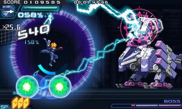 アキュラは、ダッシュ体当たりで対象物をロックオンできる。ロックオン状態で発射するフォトンレーザーは曲線を描いて敵に必中する。