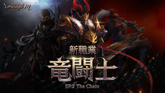 「竜闘士」は、1~2セル攻撃が可能な両手武器「チェーンソード」をメイン武器とし、竜の力を借りて特殊な「覚醒」スキルが使用できる、自己強化やデバフに優れたスキルを使用可能な中衛的職業。番組内では、竜闘士に関連する武器やスキル、変身の紹介が行なわれた。