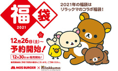 モスバーガーを展開するモスフードサービスは、「リラックマ」とコラボした「2021年 福袋」の予約受付を本日12月26日より対象店舗にて開始する。価格は3,000円(税込)。予約期間は12月29日までとなり、1人3個まで購入できる。受取期間は12月30日から2021年1月11日まで。12月30日より当日販売も行なわれるが、販売開始前に予約で完売している場合もある。