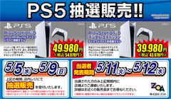 ZOA、会員向けに実施していたPS5の抽選結果を5月11日・12日に発表