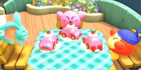 「星のカービィ ディスカバリー」の「くるまほおばりケーキ」を再現したメニューが「Kirby Cafe」に4月1日登場