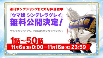 週刊ヤングジャンプにて連載中のコミック作品「ウマ娘 シンデレラグレイ」について、連載100回達成記念として、100話までの無料公開を11月17日から開始する。期間は12月2日まで。