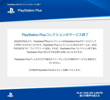 ソニーインタラクティブエンタテインメントは、PlayStation Plus加入者向けのコンテンツ「PS Plus Collection」のサービス終了日を5月10日に変更した。
