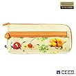 ソフト素材で中身を優しく守る、出し入れ簡単・持ち運び便利な収納ポーチ。前面のクリアポケットがアクセントになっている。