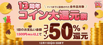 なお電子書籍サイト「BOOK☆WALKER」では現在「13周年コイン大還元祭」を行なっており、12月11日9時59分までに購入すると、更に6,300円分のコインを貰うことができる。