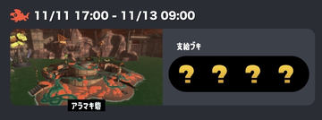 これは、支給ブキが「クマサン印」シリーズに置き換わる通称“クマフェス”と呼ばれるイベントの予兆。「クマサン印」のブキは軒並み強力な性能を持っており普段は出現しないが、“クマフェス”開催中に限っては「クマサン印」のブキが無条件に出現する。