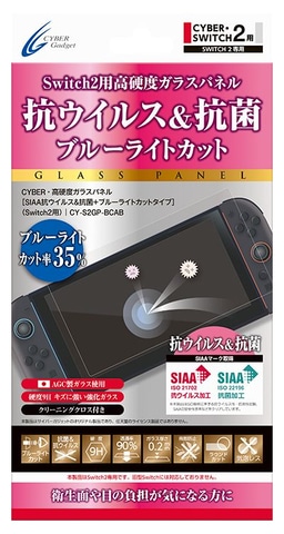 「CYBER・高硬度ガラスパネル[SIAA抗ウイルス&抗菌+ブルーライトカットタイプ](Switch2用)」