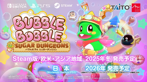 配信番組「ARC SYSTEM WORKS Showcase | 2025.6.27」にて、プレイステーション 5、Nintendo Switch用アクション「バブルボブル シュガーダンジョン」が発表された。
