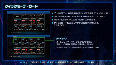 本作では、巻き戻し、クイック・セーブ/ロードはもちろん、イージーモード、無敵モード、トレーニングモードなど様々な機能を搭載し、かつてクリアできなかった作品のゲームプレイをサポート。また、当時のバグ再現や、マニアックな設定オプションも多数実装しており、「グラディウス」シリーズコレクションの決定版ともいえる作品となっている。