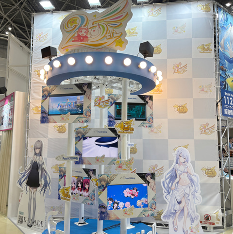 ブースは「ATRI」や「グリザイア」といった作品の横断幕で彩られているほか、過去作のPVを放送するモニターも多数設置。ここでは最近の作品から、過去の名作までのトレーラーをチェックできる。また、最新作「GINKA」のパネルなどフォトスポットも用意されている。