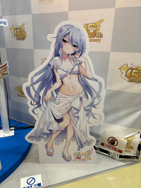 さらに、「ATRI」、「グリザイア」、「ジブリール」の3層アクリルスタンドも販売。こちらはイラストが3層に分けられており、立体的な見た目が楽しめるアイテムとなる。実際にジブリールの商品を拝見したが、かなり攻めたデザインになっており、リカが触手に絡みつかれているというキワドさ全開のグッズだった。3層に分けられているため、それぞれ左右に少しずらして好きなアングルにすることができるほか、別の商品との入れ替えも可能になっているという。当然、全年齢のグッズだが「ジブリール」らしさあふれるアイテムに仕上がっていた。