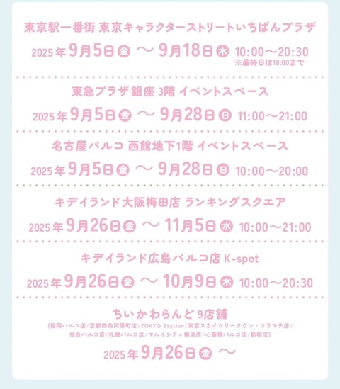 2025年9月26日〜10月9日 - ちいかわらんど 9店舗