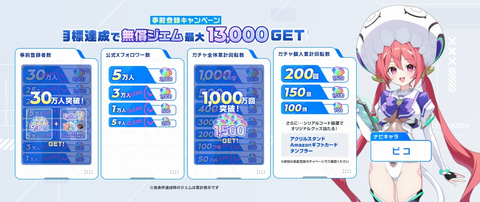 配信に先駆けて実施されていた事前登録キャンペーンでは「無償ジェム10,500個」と「豪華アイテム」の配布が決定。事前登録ガチャではSSR確率がアップしている。