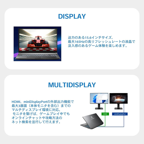 液晶ディスプレイ:15.6インチ ノングレア FHD液晶(1,920×1,080ドット表示)/リフレッシュレート 165Hz