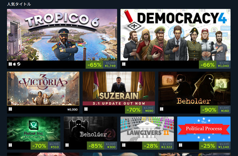 Steamにて「政治シミュレーションフェス」が日本時間9月16日まで開催されている。