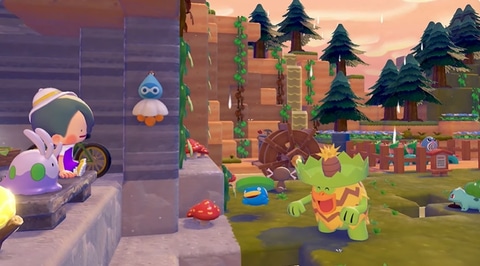 本作はニンゲンにへんしんしたメタモンを主人公に、様々なポケモンたちの力を借りてフィールドを開拓し暮らす新作タイトル。サンドボックス風のビジュアルを採用しており、ブロック状の地形を崩し自分好みに組み上げることができる。