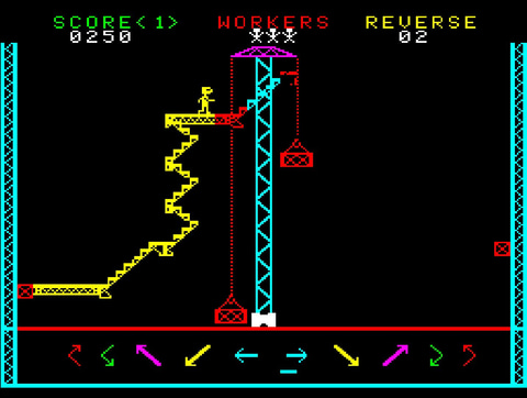 「スチールワーカー」は1980年にタイトーから発売されたパズルゲーム。建設現場で高所作業をしているワークマンが進む先の足場を設置していき、落下させずに目的地までの道をつなげていくことが目的となる。ワークマンが事故に遭わないように、ときには回り道させたり逆戻りさせたりすることも必要。