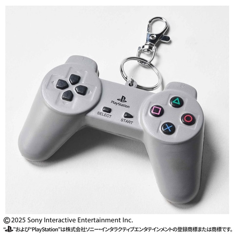 マスコットキーホルダーは、初代「PlayStation」のコントローラー本物そっくりのミニチュアサイズで登場。弾力のあるスクイーズになっており、握れるたのしいキーホルダーとなっている。