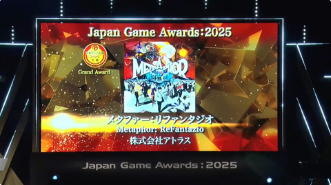 一般社団法人コンピュータエンターテインメント協会(CESA)が開催する「日本ゲーム大賞2025 年間作品部門 発表授賞式」において、「メタファー:リファンタジオ」が大賞を受賞した。