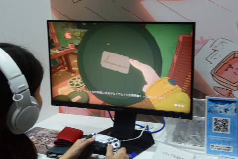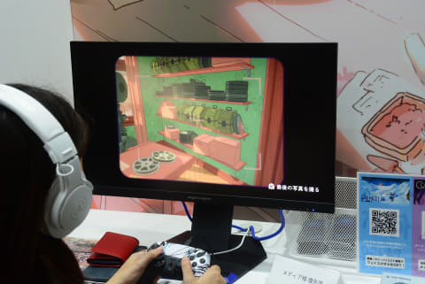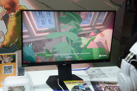 待合室、というところがユニークで、ゲームショウ会場にはあまり見られない座ってゆったりできる空間を用意し、彼らの先にゲームをプレイしているユーザーが見えるようになっている。これはパルコを訪れるお客さんがくつろいでいる先の景色だと感じた。他のゲームメーカーと異なり、プレーヤーを"眺める"空間を用意することで、ゲームを知らない人にもその世界を感じさせる試みだろう。