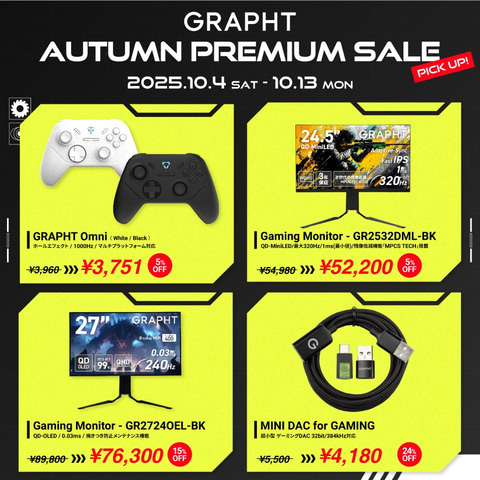 なお、本セールは、GRAPHT OFFICIAL STORE(ECサイト)、GAMING CENTER by GRAPHT Amazonブランドストア、および全国の家電量販店やPC専門店などで一斉に行なわれている。