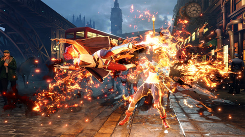 「バーニングキック」ヒットまたはガード後には、ドライブゲージを1本消費して「チェイスナックル」で追加攻撃したり、ガードさせても有利な「ダブルバーン」でプレッシャーをかけたりもできる。