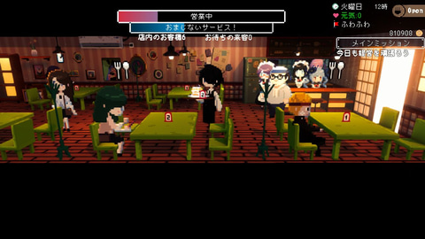 喫茶店の経営は店長であるあなたの仕事。メイドさんのお仕事スキルを上げたり、適材適所の役割を与えて、収益を伸ばしていこう。稼いだお金は、買い物や食事、カプセルトイなどに使える。