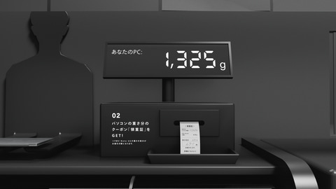 3日間限定の販売となり、イベントスペースにて持参したパソコンの重量を計測し、その重量と「FMV Note U(UX-K3)」の重量との差分に応じたクーポン「領重証」が発行される。販売価格1,000円となるがこのクーポン分値引きした金額での購入可能。クーポンは最大700円が上限となり、支払いはキャッシュレス決済のみとなる。